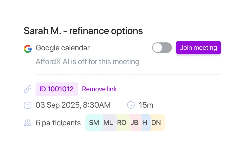 AffordX can automatically join your online client meetings and securely record the conversation for you.