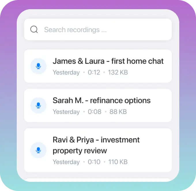 Highlight key decisions, action items, and lending details - ready for lenders or CRM